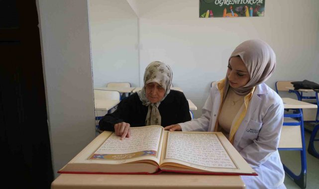 Gaziantep'te yaşayan 87 yaşındaki Fadile Tılfarlıgil, kadınlar için açılan kursta Kur'an-ı Kerim okumayı öğrendi.