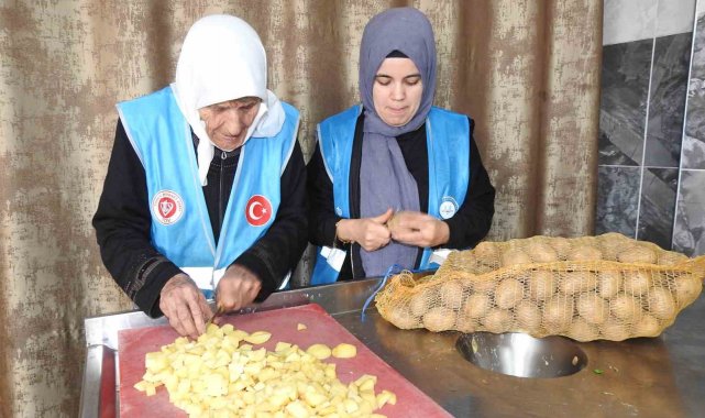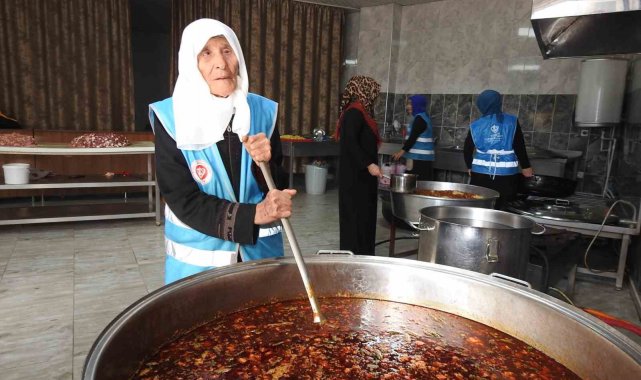 Gaziantep'te ihtiyaç sahibi ailelerin sıcak yemek ihtiyacının karşılandığı cami aşevinde gönüllü çalışan 90 yaşındaki Nazife Doğan, ihtiyaç sahipleri için yemek hazırlamanın mutluluğunu yaşıyor.