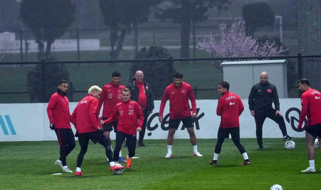 Türkiye Futbol Federasyonu (TFF) Riva Hasan Doğan Milli Takımlar Kamp ve Eğitim Tesisleri'nde Teknik Direktör Vincenzo Montella yönetiminde düz koşuyla başlayan antrenman, ısınma hareketleri ve top çalışmalarıyla devam etti.