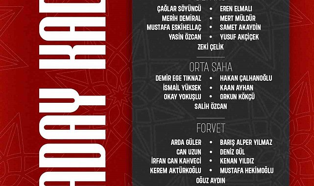 Kaleci: Altay Bayındır (Manchester United), Berke Özer (Eyüpspor), Muhammed Şengezer (Başakşehir), Uğurcan Çakır (Trabzonspor)