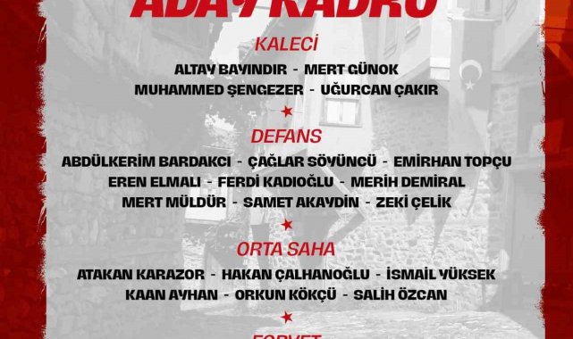 Kaleci: Altay Bayındır (Manchester United), Mert Günok (Beşiktaş), Muhammed Şengezer (RAMS Başakşehir), Uğurcan Çakır (Galatasaray)