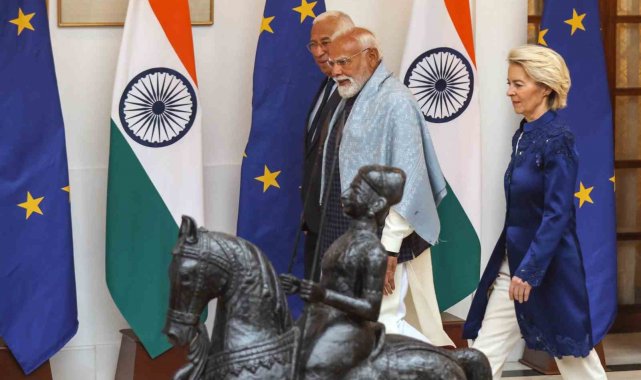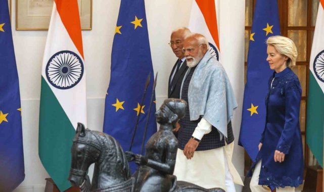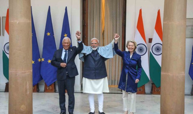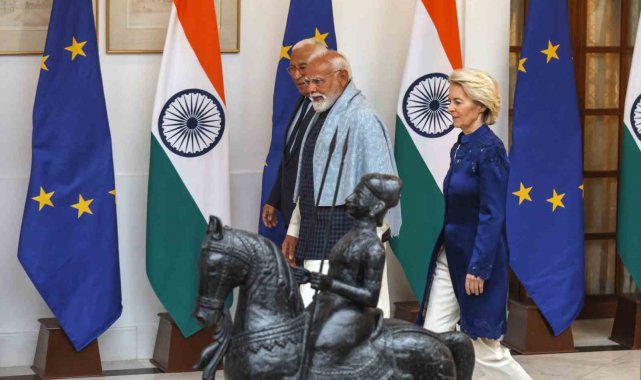 Avrupa Birliği (AB) liderleri, ABD Başkanı Donald Trump'ın yaptırım tehditleri gölgesinde Hindistan'da tarihi bir ticaret anlaşmasına imza attı. Avrupa Birliği (AB) Konseyi Başkanı Antonio Costa, AB Komisyonu Başkanı Ursula von der Leyen ve Hindistan Başbakanı Narendra Modi, başkent Yeni Delhi'de gerçekleştirilen Hindistan-AB Zirvesi'nde "tüm anlaşmaların anası" olarak tanımlanan tarihi serbest ticaret anlaşmasını ve karşılıklı iş birliğine ilişkin belgeler imzaladı. Liderler imza töreninin ardından ortak basın toplantısı düzenledi.