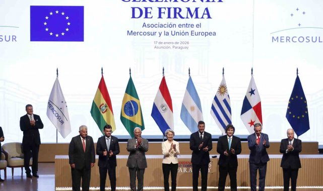ASUNCION (İHA) – Avrupa Birliği (AB) ile Güney Amerika Ortak Pazarı (Mercosur) bloğu, 25 yıllık müzakerelerin ardından kapsamlı bir ticaret anlaşmasına imza atarken AB Komisyonu Başkanı Ursula von der Leyen, "Gümrük vergileri yerine adil ticareti, izolasyon yerine üretken ve kalıcı bir ortaklığı tercih ediyoruz" dedi.