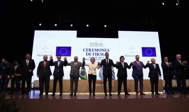Avrupa Birliği (AB) ve Brezilya, Arjantin, Paraguay, Uruguay ve Bolivya'dan oluşan Güney Amerika Ortak Pazarı (Mercosur) bloğu, Paraguay'ın başkenti Asuncion'da düzenlenen törenle dünyanın en büyük serbest ticaret alanını oluşturan ve 700 milyondan fazla tüketiciyi kapsayan tarihi bir ticaret anlaşması imzaladı. İmza törenine Avrupa Birliği'ni (AB) temsilen AB Komisyonu Başkanı Ursula von der Leyen ve AB Konseyi Başkanı Antonio Costa katıldı. Törene Mercosur tarafından ise Paraguay Devlet Başkanı Santiago Pena, Bolivya Devlet Başkanı Rodrigo Paz, Arjantin Devlet Başkanı Javier Milei, Uruguay Devlet Başkanı Yamandu Orsi ve Mercosur'un ortak ülkelerinden Panama Devlet Başkanı Jose Raul Mulino katıldı. Brezilya Devlet Başkanı Luiz Inacio Lula da Silva programı nedeniyle törene katılamazken, Brezilya'yı Dışişleri Bakanı Mauro Vieira temsil etti. Anlaşma, 1991'de Mercosur bloğunun kurulmasıyla sonuçlanan Asuncion Anlaşması'nın da imzalandığı yer olan Paraguay Merkez Bankası'nda imzalandı.