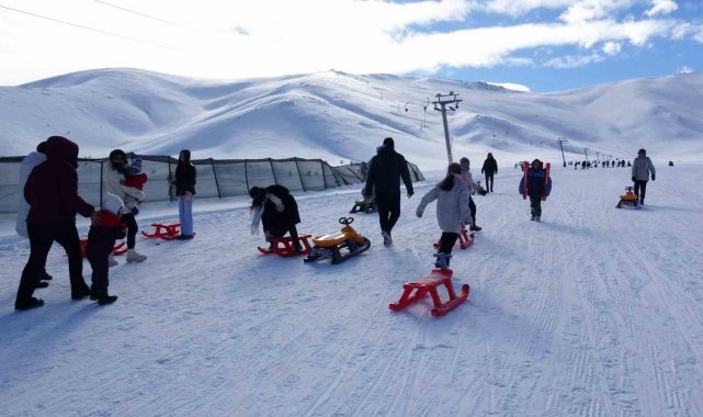 Aileleriyle birlikte kayak merkezine gelen çocuklar, kayak ve kızakla kaymanın heyecanını yaşarken pistlerde renkli görüntüler oluştu. İlk kez kayak yapan çocukların mutluluğu yüzlerine yansırken, aileler de çocuklarının sevincine ortak oldu. Tatili fırsat bilen aileler, çocuklarıyla birlikte kayak merkezinde keyifli ve unutulmaz anlar yaşadı.