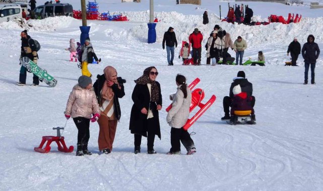 Van'ın Gevaş ilçesinde bulunan Abalı Kayak Merkezi, okulların yarıyıl tatiline girmesiyle birlikte özellikle çocuklar ve ailelerin akınına uğradı.
