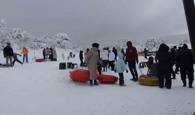 Türkiye'nin en gözde turizm merkezlerinden biri olan Abant Gölü Milli Parkı, yarıyıl tatilinde ziyaretçi akınına uğradı. Bölgede etkili olan kar yağışını fırsata çeviren Örencik köyü vatandaşları, milli parkın girişindeki dik yamaçlarda kendi imkanlarıyla doğal bir kayak pisti oluşturdu.