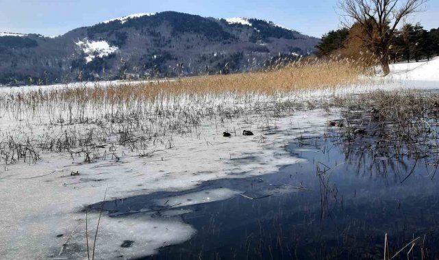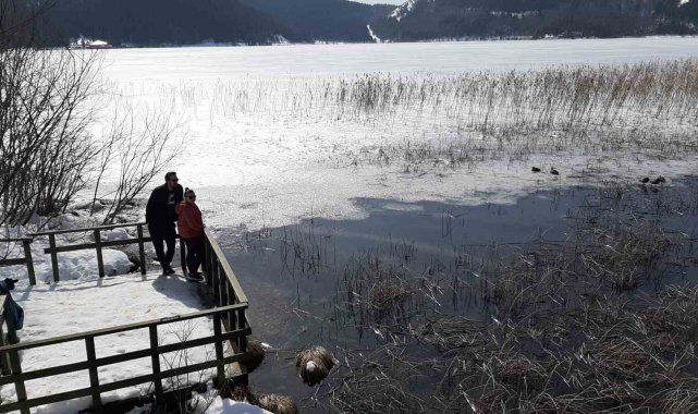 Öte yandan, hava sıcaklıklarının artmasıyla birlikte göl çevresindeki karlar erimeye başlasa da göl yüzeyinde kalan buz tabakası, yiyecek bulmakta zorlanan ördekleri olumsuz etkiliyor. Duyarlı vatandaşlar, aç kalan ördekleri elleriyle besleyerek onlara yardımcı oluyor.