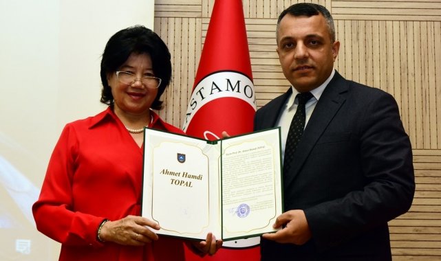 Konuşmanın ardından El-Farabi Kazak Milli Üniversitesi Rektörü Prof. Dr. Canseyit Tümanbayev tarafından gönderilen mesaj okundu ve teşekkür belgeleri takdim edildi.