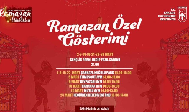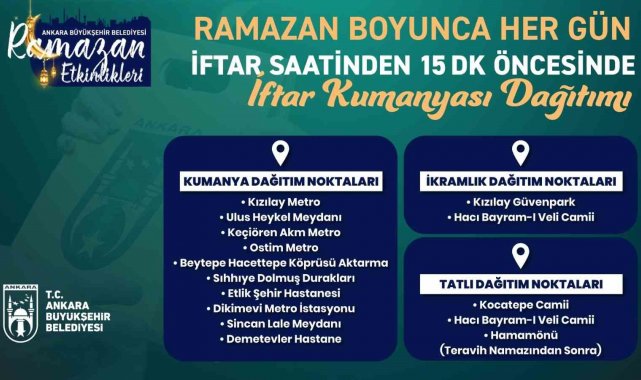 Ankara Büyükşehir Belediyesi (ABB), Ramazan boyunca 50'ye yakın noktada 500'ü aşkın etkinlik düzenleyecek.