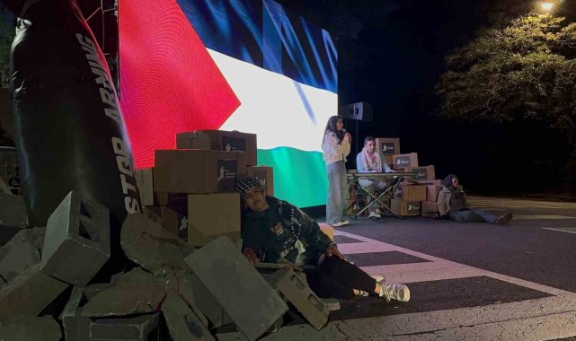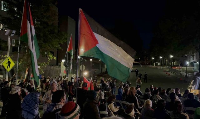 ABD'nin başkenti Washington'da toplanan bir grup aktivist, İsrail'in Gazze üzerindeki ablukasına son verilmesi çağrısında bulunmak üzere İsrail'in Washington Büyükelçiliği önünde gösteri düzenledi. "The Sea to DC" başlığıyla düzenlenen dayanışma gösterisinde, kısa süre önce Gazze'ye insani yardım ulaştırmak isterken İsrail güçleri tarafından uluslararası sularda alıkonulan Global Sumud filosunda yer alan Flotilla üyeleri de söz aldı. Aktivistler, Gazze'de yaşanan insani dramın son bulması gerektiğini vurgularken, ablukayı "uluslararası hukuka aykırı bir kuşatma" olarak nitelendirdi. Filo üyelerinden birçoğunun ilk kez kamuoyuna konuştuğu etkinlikte, tanık oldukları olayları paylaştılar. Filo üyesi aktivistler, "Gazze halkının direnişine ve onurlu mücadelesine destek vermeye devam edeceğiz" mesajını verdi.