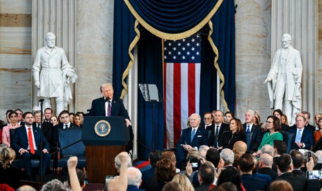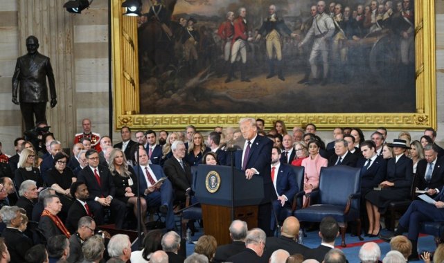 ABD'de ikinci Donald Trump dönemi başladı. Başkent Washington DC'deki Kongre Binası Rotunda Salonu'nda düzenlene törenle Trump, ABD'nin 47. başkanı olarak yemin ederek resmen göreve başladı. Yaşayan tüm eski ABD başkanları olan Barack Obama, Bill Clinton, Joe Biden ve Başkan Yardımcısı Kamala Harris ile senatörler, Temsilciler Meclisi üyeleri törendeki yerlerini aldı. İş dünyasının önde gelen isimleri Elon Musk, Jeff Bezos, Mark Zuckerberg ve Sundar Pichai de törene katıldı. Törenin başında New York Başpiskoposu'nun dua okumasının ardından ilk olarak Başkan Yardımcısı James David Vance, ardından Trump iki İncil'e el basarak yemin etti.