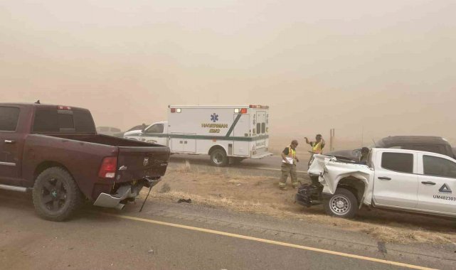 ABD'nin New Mexico eyaletinde etkili olan kum fırtınası görüş mesafesinin sıfıra inmesine ve zincirleme trafik kazalarına yol açtı.