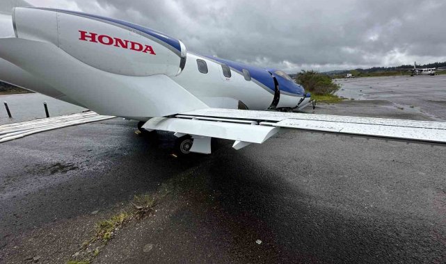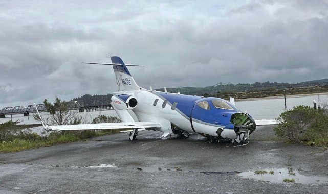 ABD'de Southwest Oregon Bölge Havalimanına iniş yapan 2019 model Honda HA-420 tipi küçük bir uçak, yerel saatle 06.12'de pistten kayarak suya düştü. Bölgeye kurtarma ekipleri sevk edildi. Uçaktaki pilot ve 4 yolcu yaralı olarak kurtarıldı. Havalimanından yapılan açıklamada, kıyıdan 30 metre sürüklenen uçağın vinç kullanılarak 4 saat sonra sudan çıkarıldığı aktarıldı.