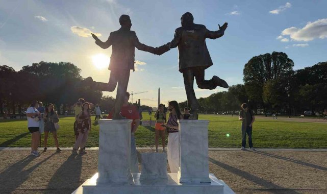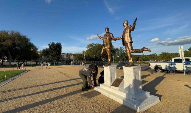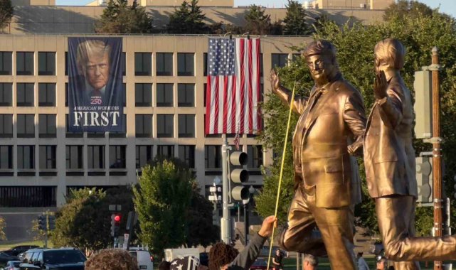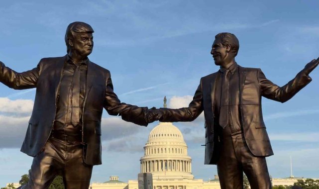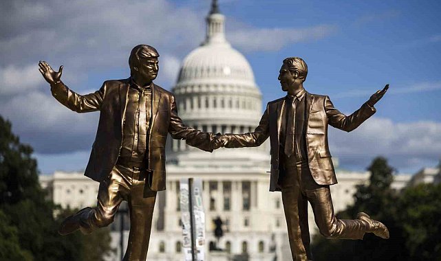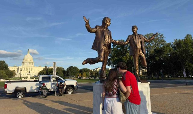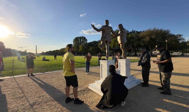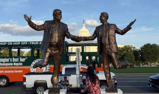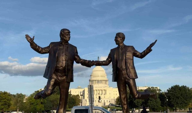 ABD'de Trump ve Epstein'ın el ele tasvir edildiği heykel eski yerine yerleştirildi