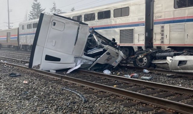 ABD'nin Washington eyaletine bağlı Auburn'da yanlış yöne girerek hemzemin geçitte takılan tır, faciaya yol açtı. Hızla gelen yolcu treni, hemzemin geçitteki tıra çarptı. Tırın ön tarafı parçalanırken, o anlar amatör kameralara yansıdı. Tır şoförü ve yanındaki kişinin saniyeler önce kaçtığı görüldü. Trende ise 157 yolcunun bulunduğu, ancak kimsenin yaralanmadığı öğrenildi.