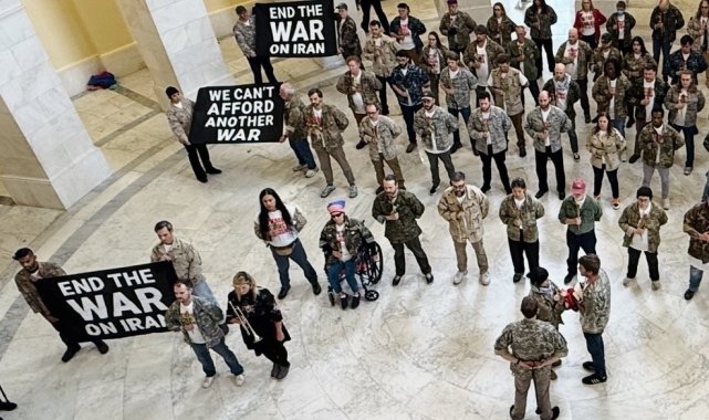 ABD'nin başkenti Washington'da İran'a karşı savaşı protesto eden gazi örgütleri, Kongre binasında toplandı. Protestocular, ABD saldırılarında öldürülen İranlıları anmak için kırmızı laleler taşıdı ve "İran'a karşı savaşa son verin" yazılı pankartlar açtı. Savaş sırasında ölen 13 ABD askerini de anan protestocular, savaş karşıtı sloganlar attı. Capitol Polisinden protestoculara müdahale gecikmedi. Aralarında engellilerin de bulunduğu 62 gazi ve aile üyesi plastik kelepçe takılarak gözaltına alındı.