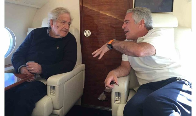 Yeni fotoğraflarda, Amerikalı meşhur filozof Noam Chomksy'nin Epstein ile birlikte uçakta çekilmiş bir fotoğrafı da bulunuyor. 97 yaşındaki Amerikalı profesör, daha önce Epstein ile belgelerde adı geçen isimler arasında yer almıştı.