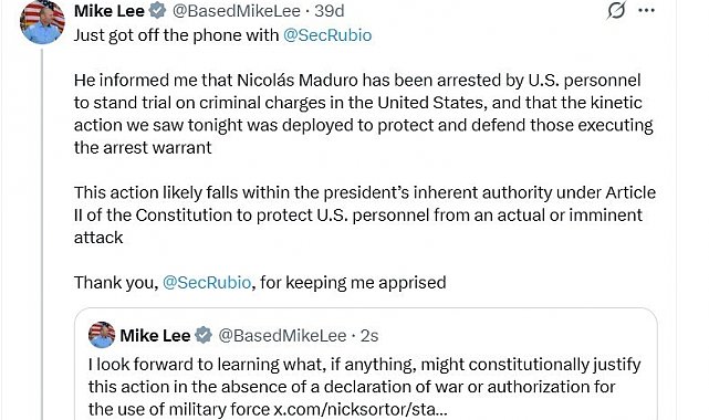 Lee önceki paylaşımında ABD'nin Venezuela operasyonunun meşruluğunu sorgulayarak, "Savaş ilanı veya askeri güç kullanma yetkisi olmaksızın bu eylemi anayasal olarak haklı çıkarabilecek herhangi bir gerekçe olup olmadığını öğrenmeyi dört gözle bekliyorum" ifadelerini kullanmıştı.