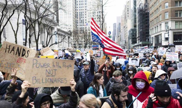 New York'ta da göstericiler, "Güç milyarderlerde değil, halktadır", "Hepimiz özgür olana dek kimse özgür değil", "Musk'ı Mars'a gönderin" yazılı pankartları taşıdı.