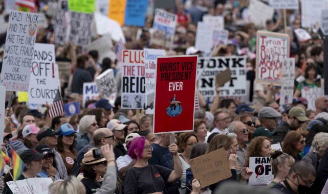 ABD'nin 50 eyaletinde eş zamanlı olarak yaklaşık bin 200 protesto gösterisi düzenlendi. ABD Başkanı Donald Trump ve Hükümet Verimliliği Departmanı'nın (DOGE) başındaki Elon Musk'ın politikalarını protesto etmek isteyen binlerce kişi başkent Washington D.C ve New York şehri başta olmak üzere ülke genelinde sokaklara döküldü. Başkent Washington'da kalabalık, "Bilimden elinizi çekin", "Yenilebilir enerjiden elinizi çekin", "Sosyal güvenlikten elinizi çekin" "Nazi Musk ve palyaço buradaki tek israf. Bizim demokrasimiz satılık değil" pankartlarıyla Trump ve Musk'a tepki gösterdi.