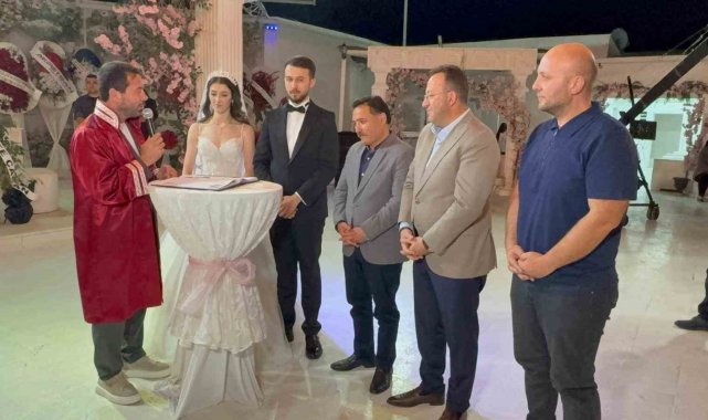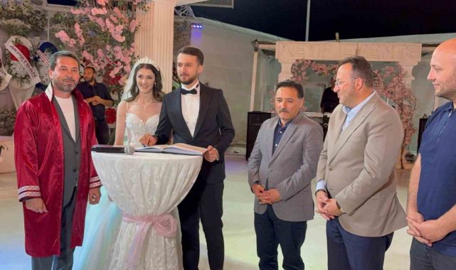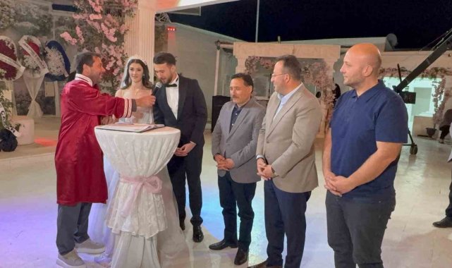Düğüne katılan Kayseri Valisi Gökmen Çiçek, genç çiftin evlilik cüzdanını Abdullah Karakaş'a vererek, çifte bir ömür boyu mutluluk diledi.