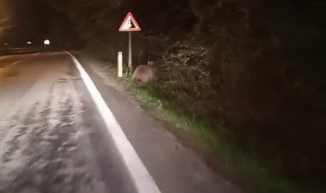 Karabük-Zonguldak karayolunda ilerleyen aracın sürücüsü Yenice'ye yaklaştığında önüne ayı çıktı. Sürücü hızını azaltırken, ayı yolda bir süre koştuktan sonra gecenin karanlığında gözden kayboldu. Akşam saatlerinde Esen köyüne giden bir başka aracın sürücüsü ve yanındaki yolcu, ormanlık alandan yola çıkan ayıyı fark etti. Bir süre araç önünde koşan ayı ormanlık alana girerek uzaklaştı. O anlar ise cep telefonlarıyla görüntülenirken, araç içindeki yolcunun şiveli konuşması ise dikkat çekti.