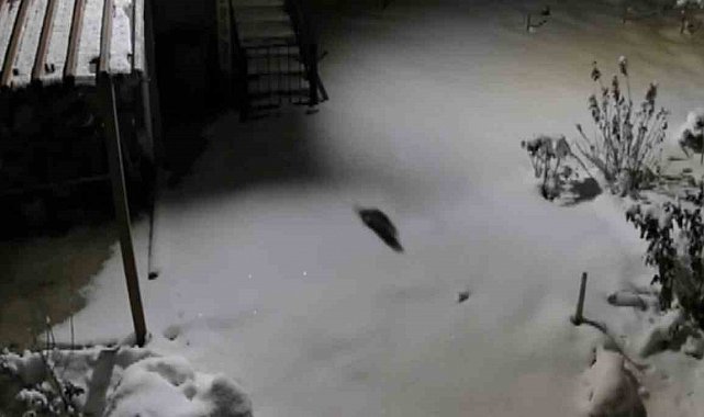 Güvenlik kamerasına saniye saniye yansıyan o anlarda sansarın kar üzerinde hızlı ve temkinli adımlarla ilerlediği, etrafı koklayarak yiyecek bir şeyler aradığı ve ardından gözden kaybolduğu görüldü.