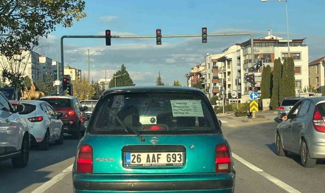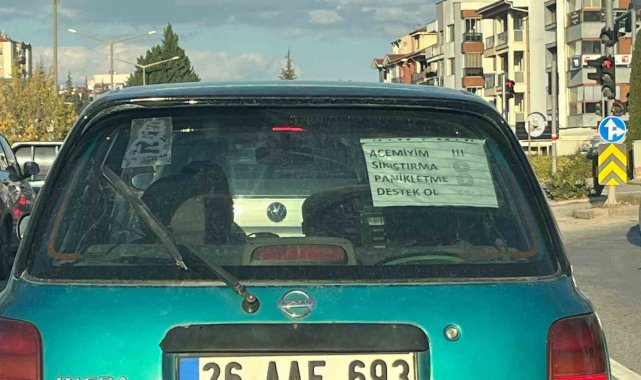 Eskişehir'de kadın sürücünün otomobilinin arka camına astığı "acemi sürücü" notu o sırada trafikte olan sürücüleri gülümsetti.