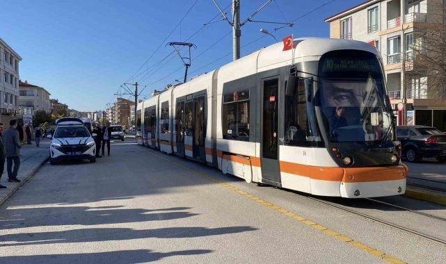 Eskişehir'de sürücüsünün bayrak asmak için açık bıraktığı servisin kapısına çarpan tramvayın içerisindeki 3 yolcu yaralandı.