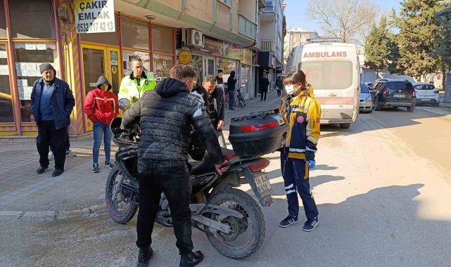 Bursa'nın İnegöl ilçesinde buzlanma sebebiyle devrilen motosikletten düşen sürücü ve arkasındaki arkadaşı yaralandı. Sürücü, kendi acısını unutup, yaralı arkadaşını teselli etti.