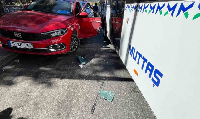 Muğla'nın Menteşe ilçesinde sürücüsünün açtığı otomobilin kapısına belediye otobüsü çarparken, kazada şans eseri yaralanan olmadı.
