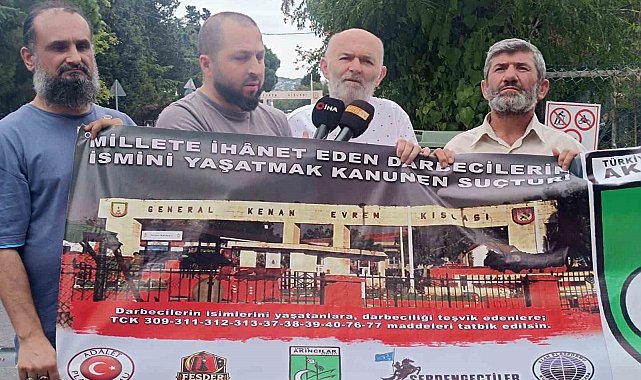 "2012-2013 yıllarında darbeciler hakkında yargılamalar oldu ama hâlâ isimleri tabelalardan silinmedi. Biz sadece Kenan Evren değil, Cemal Gürsel'den Madanoğlu'na kadar tüm darbecilerin isimlerinin cadde, sokak, kültür merkezi ve kamu binalarından silinmesini istiyoruz. Bugün hâlâ bir kışlaya darbeci Kenan Evren'in isminin verilmiş olması 85 milyona, 177 partiye ve bütün Müslümanlara hakarettir. Meclisimizden isteğimiz şudur, bu ismi acilen söktürsünler. Bunun yerine Türkiye'nin seçilmiş ilk Cumhurbaşkanı'nın ismi konulsun. Nasıl ki külliyeye "Recep Tayyip Erdoğan Külliyesi" adı verildiyse buraya da "Recep Tayyip Erdoğan Kışlası" da denilebilir."