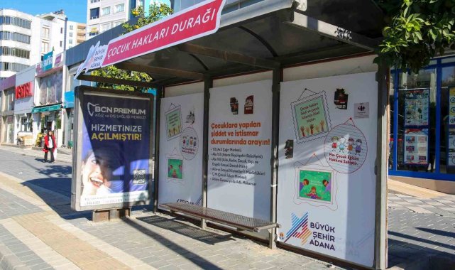 Adana Büyükşehir Belediyesi, toplu taşma durağını mesajlarla donatarak, çocuk hakları konusunda toplumda farkındalık oluşturulmasına katkı sağlamak için harekete geçti.
