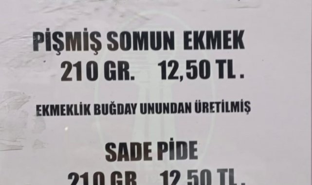 Adana'da 210 gram somun ve pide ekmeğin fiyatı 12,5 lira oldu.