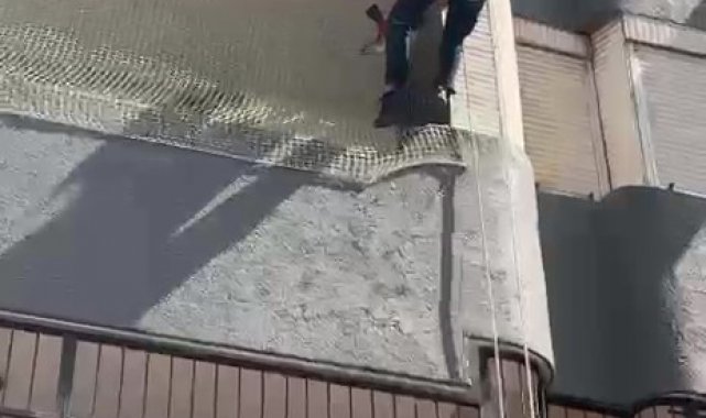 Adana'da balkon filesine sıkışan güvercin kurtarıldı