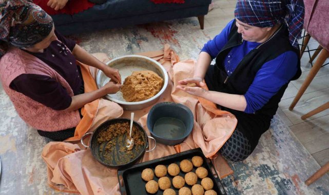 Adana'nın Kozan ilçesinde kadınlar, yaklaşan Ramazan Bayramı öncesi bayram sofralarını süsleyecek yöresel lezzetler için hazırlıklara başladı. İlçede özellikle bayram sofralarının vazgeçilmezlerinden olan İçli köfte, kadınların imece usulü çalışmasıyla evlerde büyük bir özenle hazırlanıyor.