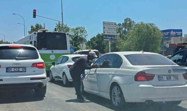 Adana'nın kırmızı ışıkta duran araçların camına aniden dayatılan bezler, ardından gelen para taleplerinde bulunan şahıslar özellikle para alamadıklarında agresif tavırlarıyla hem trafiği hem de sürücülerin güvenliğini tehdit ediyor. Yaşanan o anlardan biri de kameraya saniye saniye yansıdı.