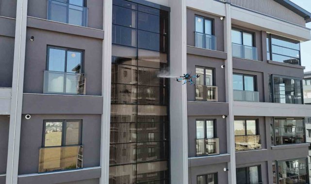 Dronlar hayatımızın her alanına girerken Adana'da yüksek katlı binaların dış cepheleri, güvenlik ve hız açısından artık dron ile temizlenmeye başlandı.