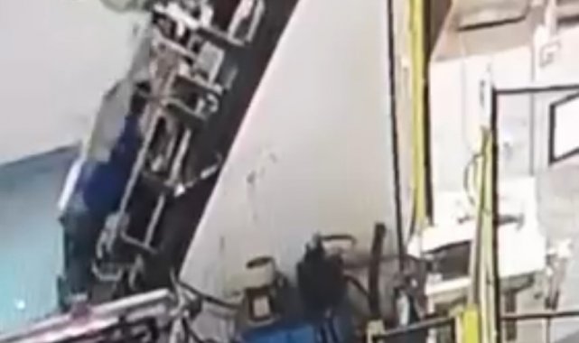 Adana'nın Sarıçam ilçesinde, organize saniyede çalışan bir işçinin sırtına makine saplandı. Ağır yaralanan işçinin o anları saniye saniye görüntülendi.