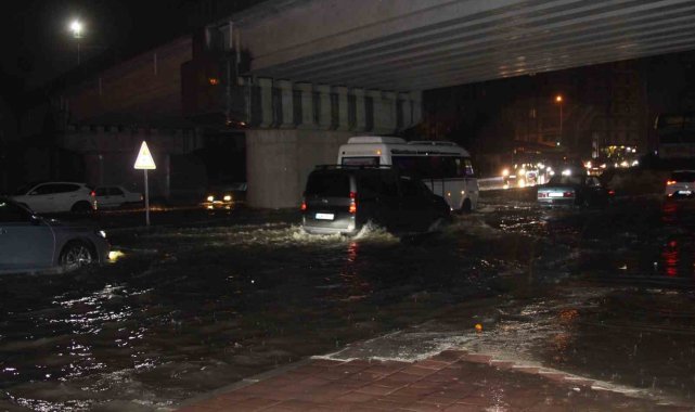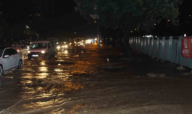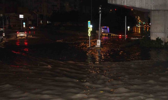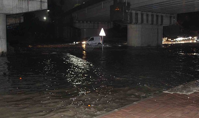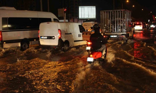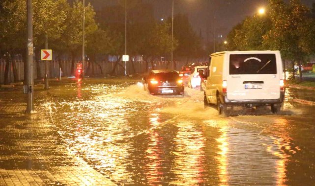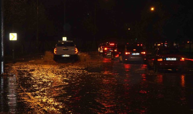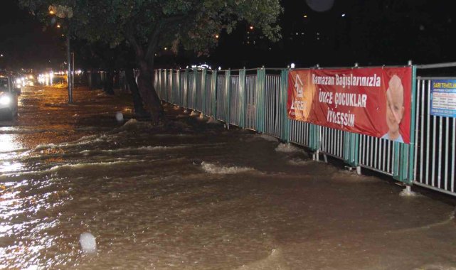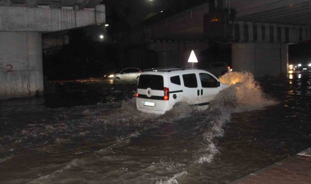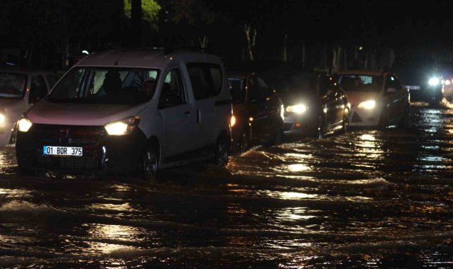 Adana'da gece bastıran sağanak yağış yolları göle çevirdi