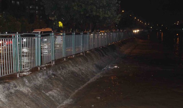Adana'da gece başlayan sağanak yağış sebebiyle yollar adeta göle döndü. DSİ'ye ait boş sulama kanalı ise yağışla birlikte doldu.