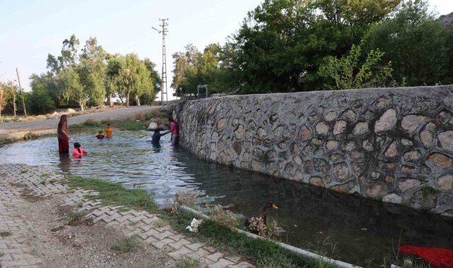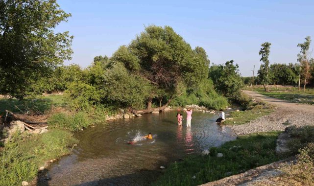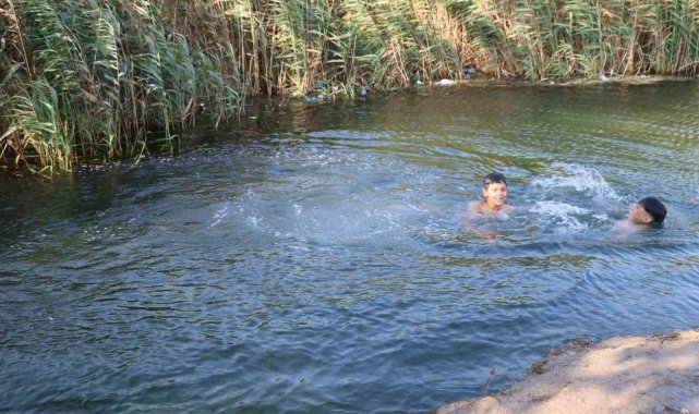 Adana'da Basra ve Afrika sıcaklarının etkisiyle termometreler rekor kırarken, Kozan'da gençler serinlemek göletlere akın etti.