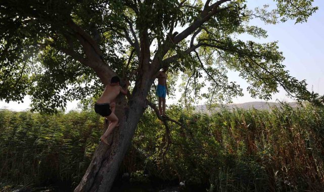 Bazı çocukların vücutlarına sabun sürerek gölete girmesi dikkat çekerken, gençler hem sıcak havadan kaçtı hem de doyasıya eğlendi.