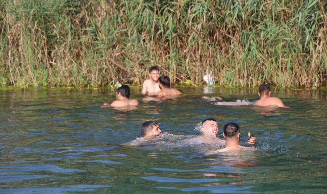 Adana'da gençler bunaltan sıcakta gölette serinledi
