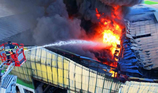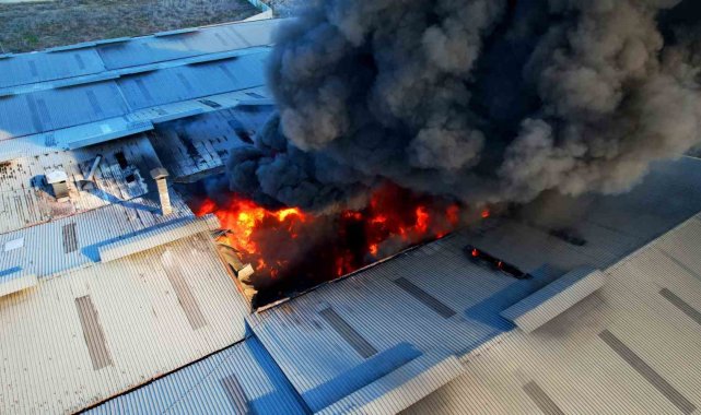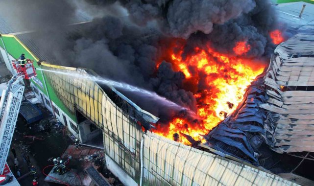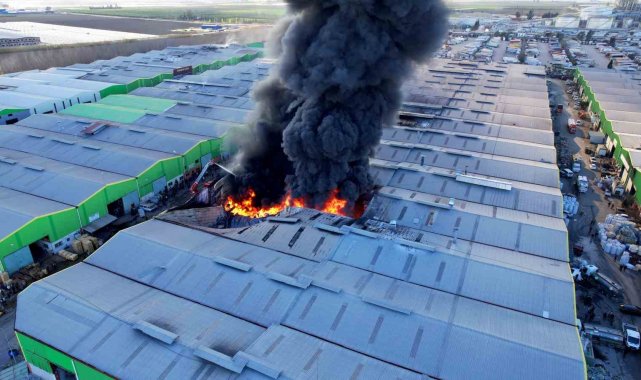 Adana'da geri dönüşüm fabrikasındaki yangın havadan görüntülendi
