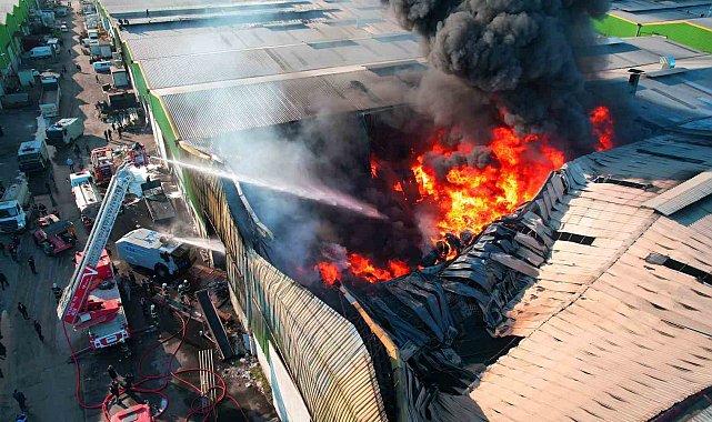 Yoğun alev ve dumanların çıktığı yangına ekiplerin müdahalesi sürüyor.
