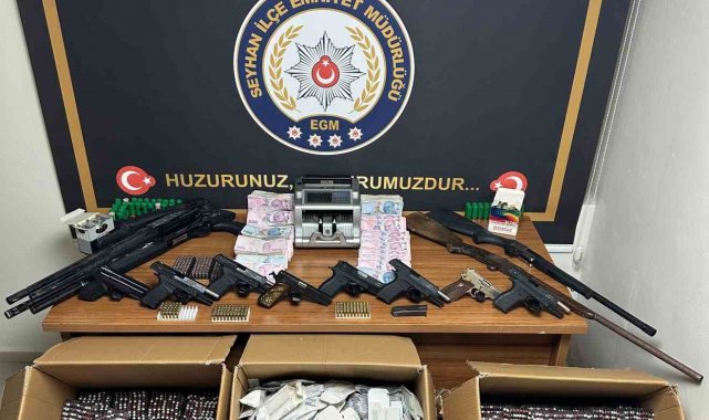 Adana'da haraç isteyen çeteye operasyon: 12 silah ile 54 bin hap ele geçirildi