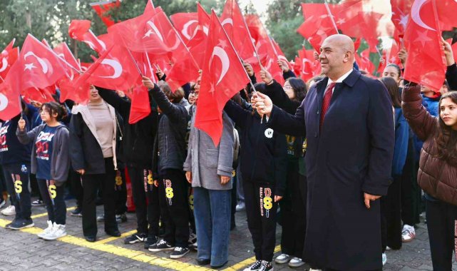 İl Milli Eğitim Müdürü Mehmet Nurettin Aras, öğretmen ve öğrencilerle bir araya gelip Türk bayrağının öneminden bahsetti.