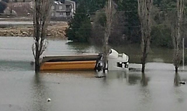 Adana'nın Karaisalı ilçesine bağlı Etekli köyünde etkili olan yağışların ardından doluluk oranı yüzde 100'e ulaşan Çatalan Baraj Gölü'nün kapaklarının açılmasıyla köyü su bastı, bir kamyon suya gömüldü.